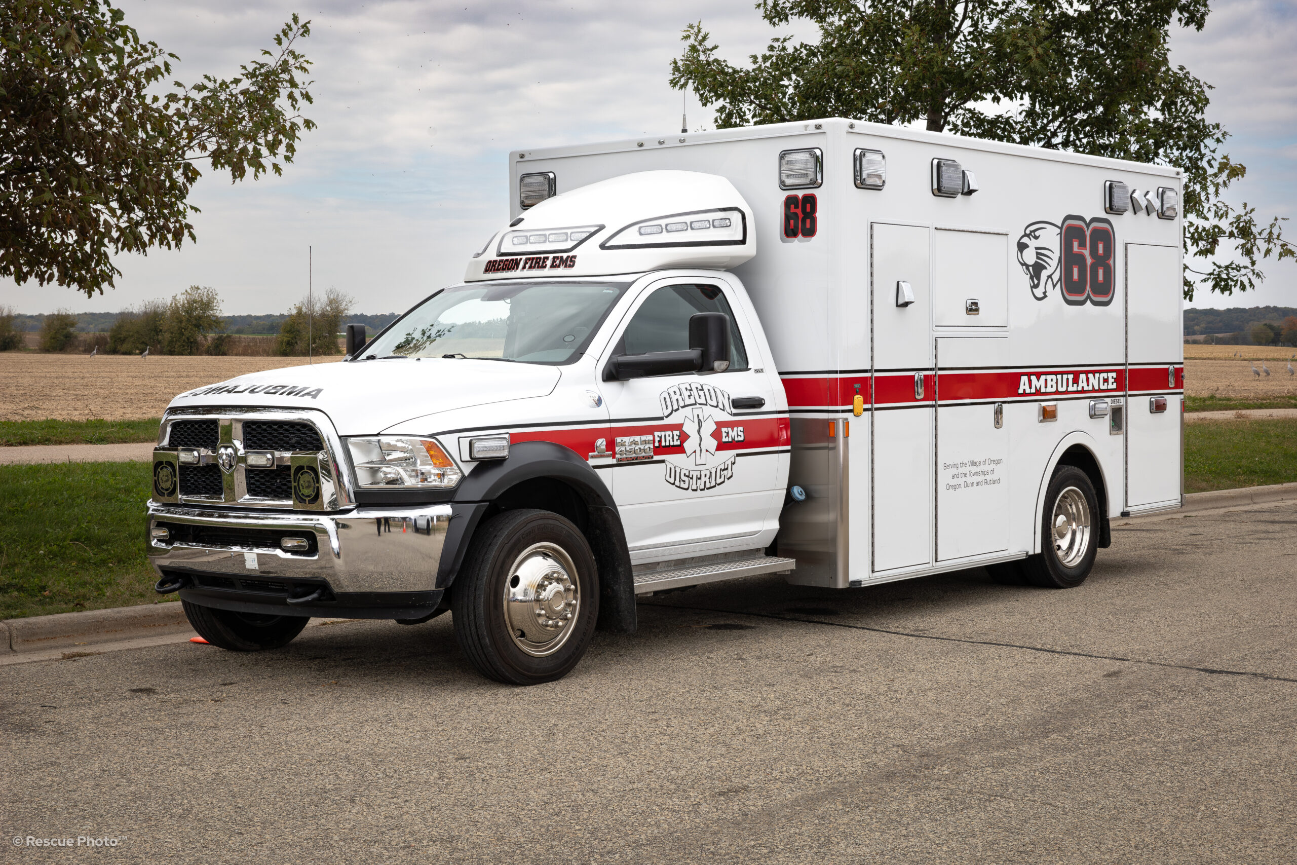 Medic/Rescue 68 is 2016 Demers on a Ram 5500 chassis. This ambulance operates at the ALS Paramedic level when used as a primary ambulance, and a ALS-AEMT/BLS-EMT ambulance when running as a secondary ambulance.