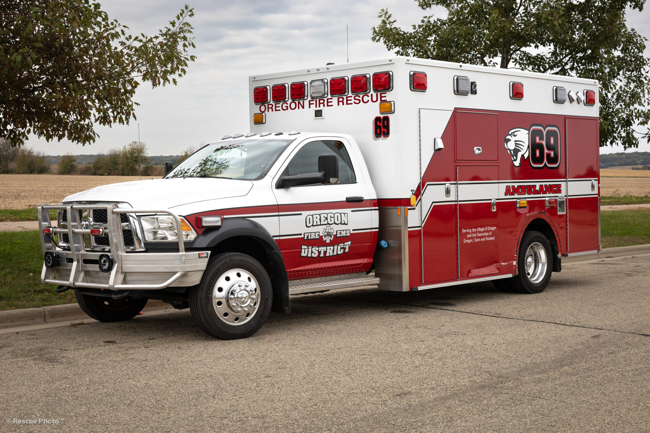 Medic/Rescue 69 is 2016 Demers on a Ram 5500 chassis. This ambulance operates at the ALS Paramedic level when used as a primary ambulance, and a ALS-AEMT/BLS-EMT ambulance when running as a secondary ambulance.