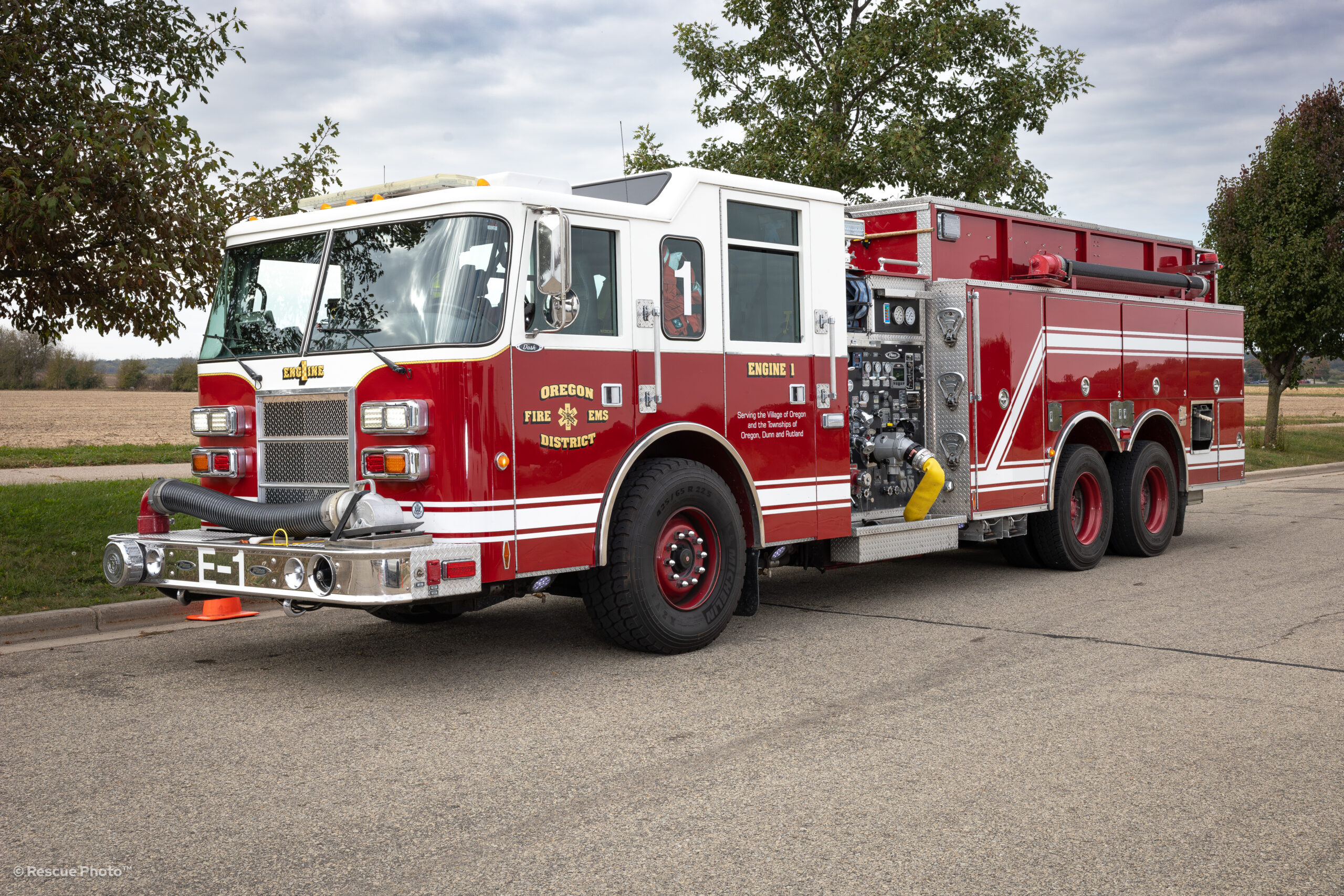 Engine 1 is a 2000 Pierce Dash Pumper carrying 2,000 gallons of water with a 2000 gallon per minute pump. This apparatus serves as the primary engine for rural areas. This apparatus was refurbished in 2020