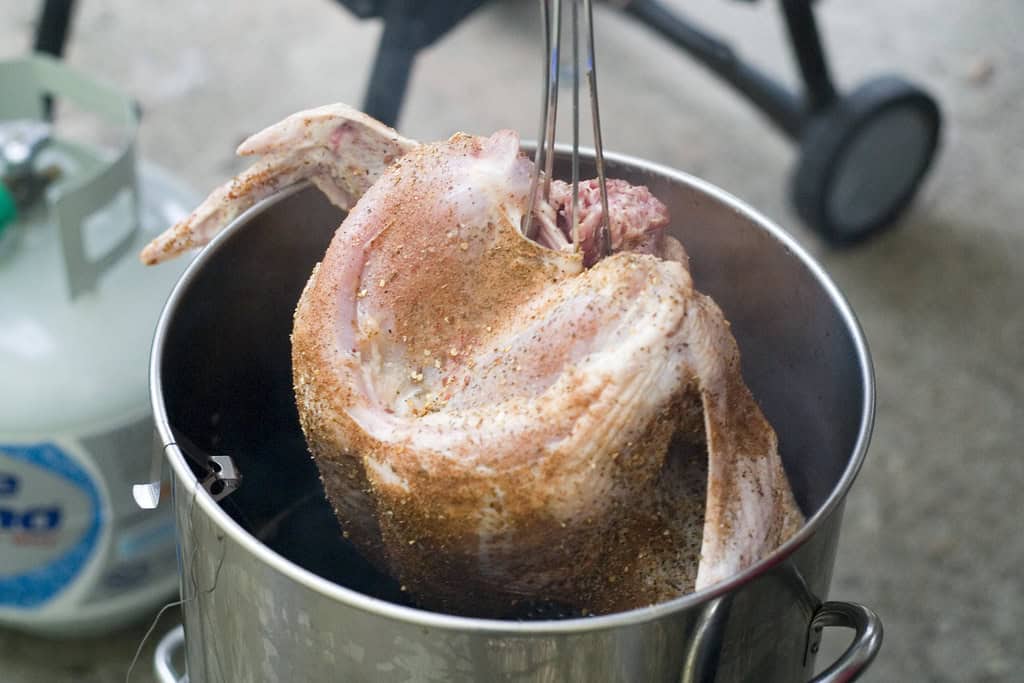 Before frying, it is crucial to measure the amount of oil needed by submerging the turkey in water first; this helps determine how much oil will be required without overflowing when the turkey is added. Once the oil is heated to the appropriate temperature—typically around 350°F—care should be taken when lowering the turkey into the fryer slowly to avoid splattering hot oil. Wearing protective gear such as gloves and goggles can also help minimize burns or injuries during this process.